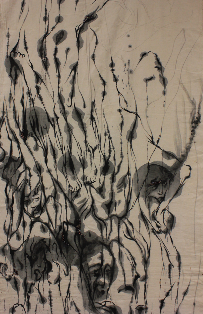 Encre et broderies sur drap de Marianne BLANCO
