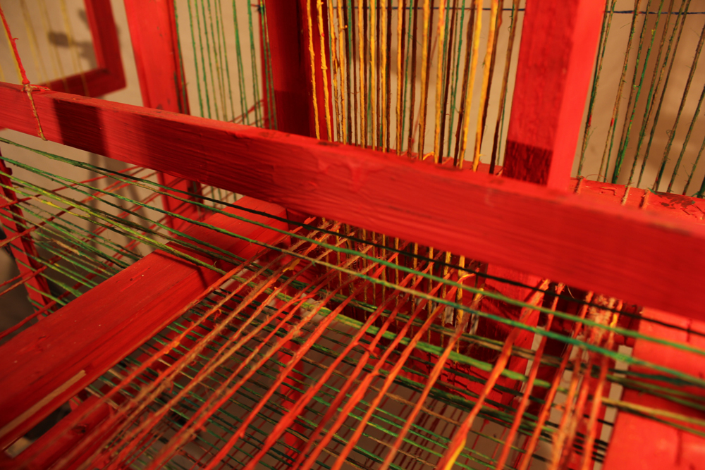Vincent Cardoso installation, cordes chassis et peinture (détail)
