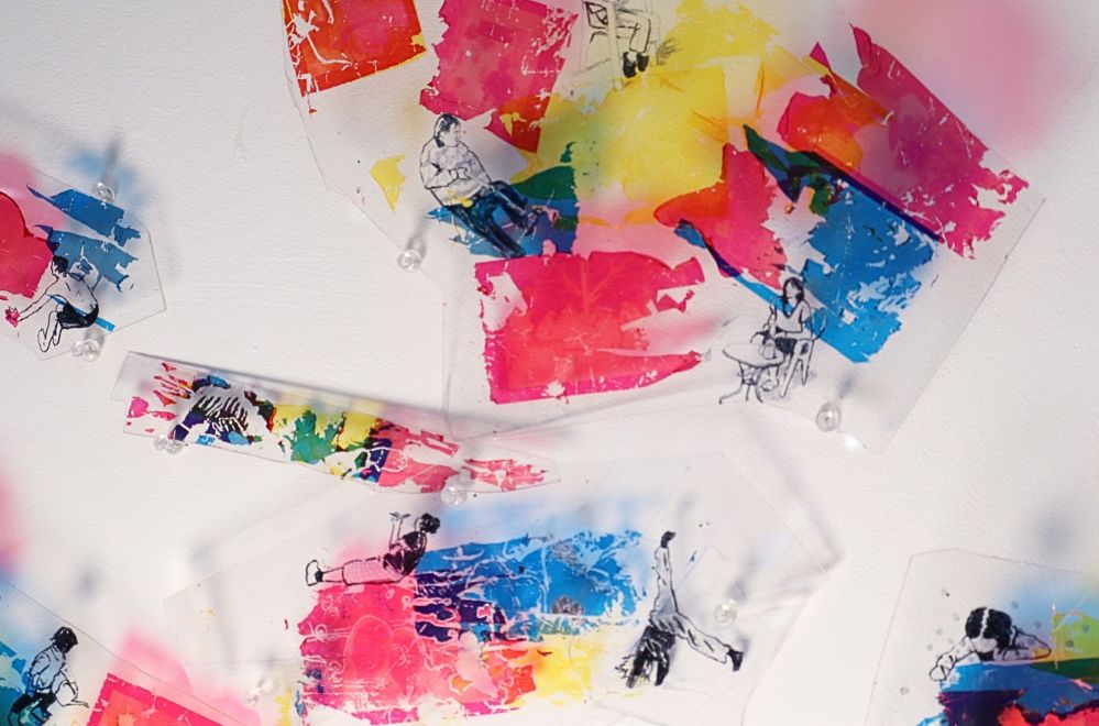 Fanny MEGRET : Sans titre, encre, films d’impressions photographiques, plexiglas, 59 x 97 x 7 cm