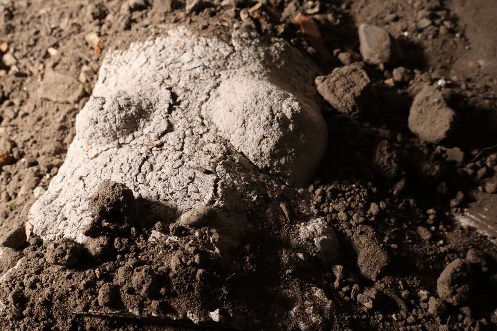 Azyadée KHLELLAD : Sans titre, pierres sculptées, terre, projection vidéo (film d’1’24 en boucle)