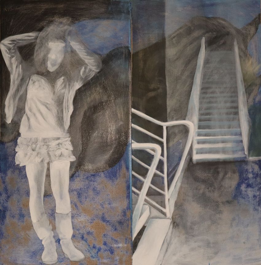 Léonie ROBLIN-PICHONNAT : Ombres blanches, acrylique sur bois, 92 x 90 cm