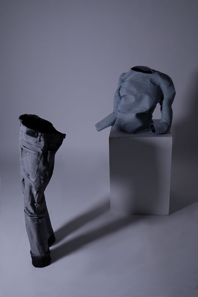 Inès AIT BOUDAOUD : Sans titre, textile, maïzena, métal, socle, 75 x 35 x 10 cm et 45 x 43 x 18 cm