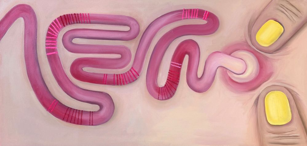 Jacqueline PENG : Sans titre (provisoire), huile et pastel sur toile, 41,5 x 100 cm