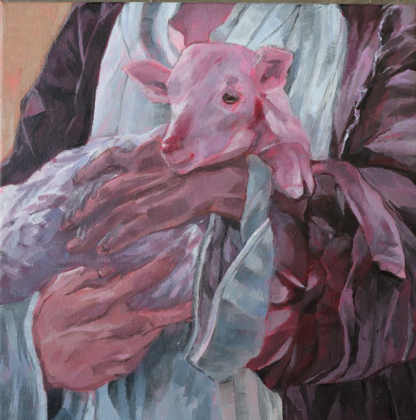 Léna MILOSEV : Agneau, huile sur toile, 40 x 40 cm