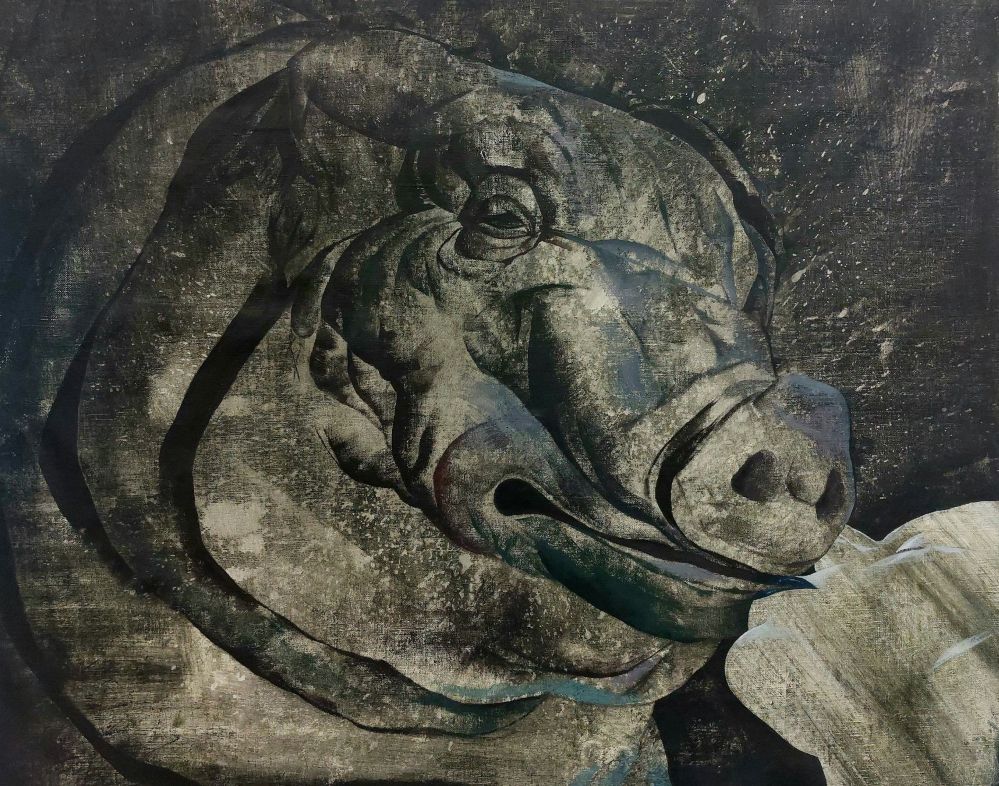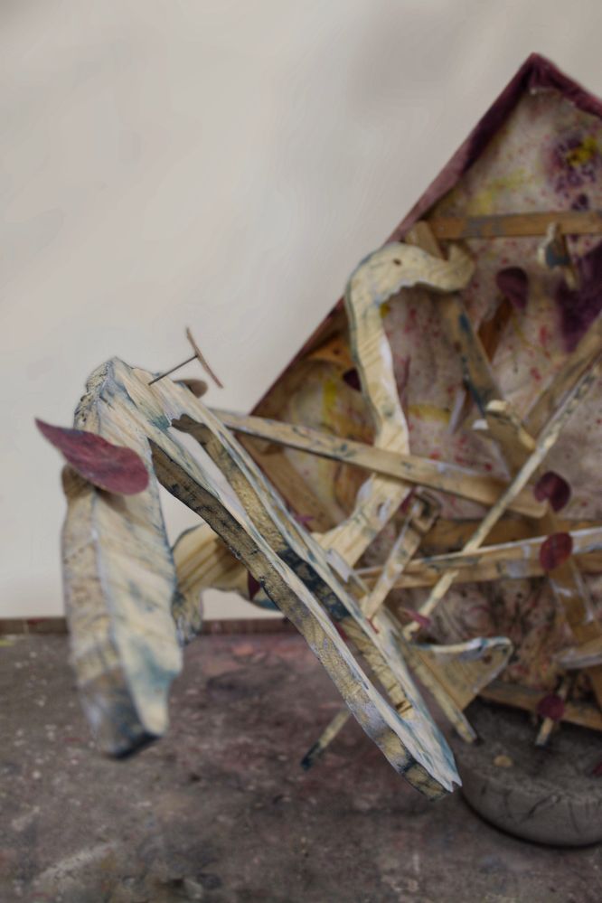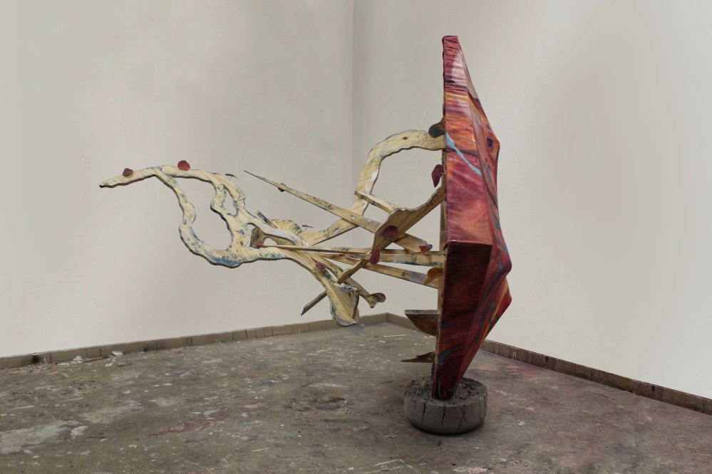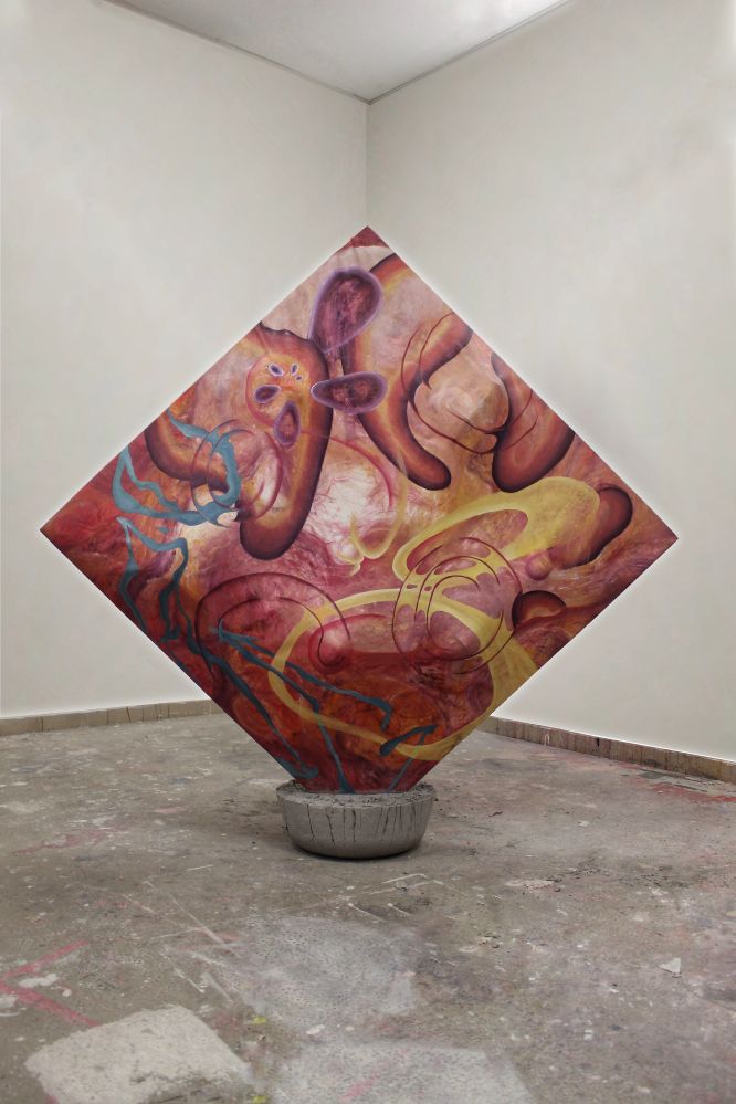 Milo BERTHET : Revers, peinture à l’huile, toile, bois et ciment, 178 x 170 x 230 cm