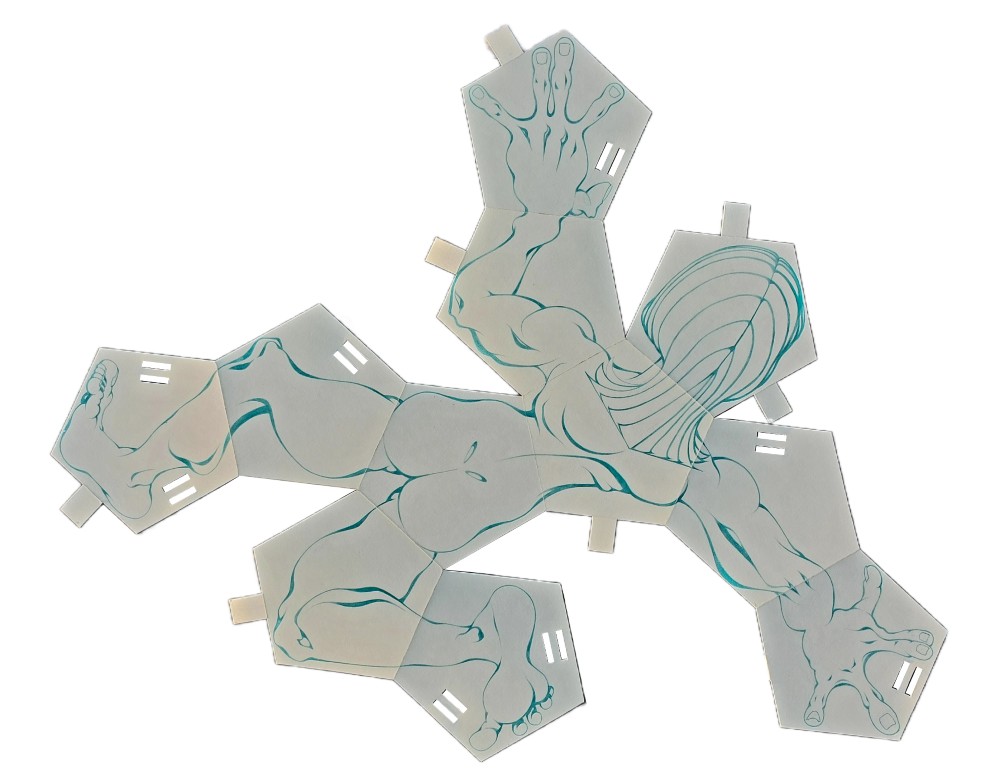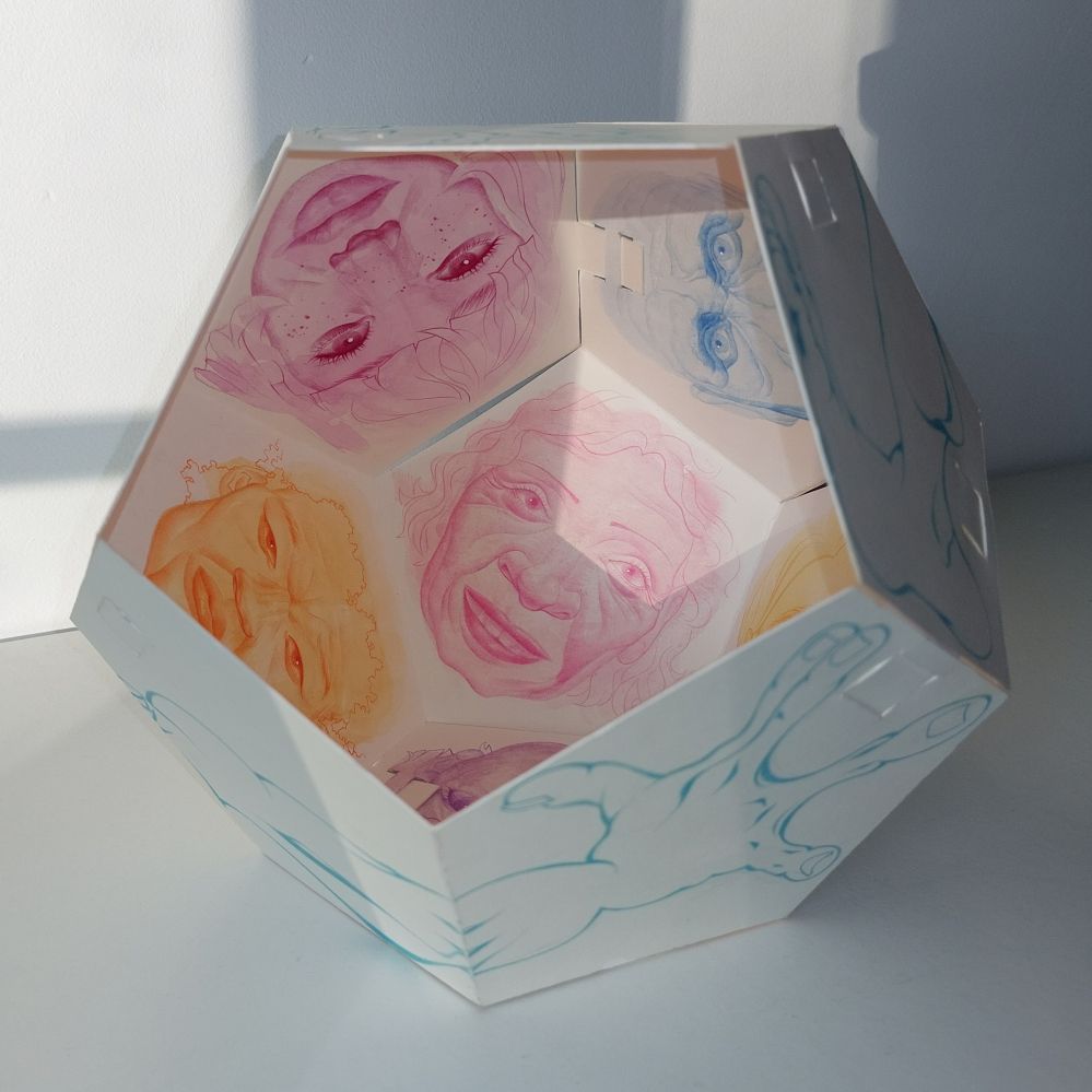 Romane AUFFRET : Univers à 12 faces, encre et crayon sur carton, 33 x 33 x 33 cm (plié), 54 x 54 cm (déplié)