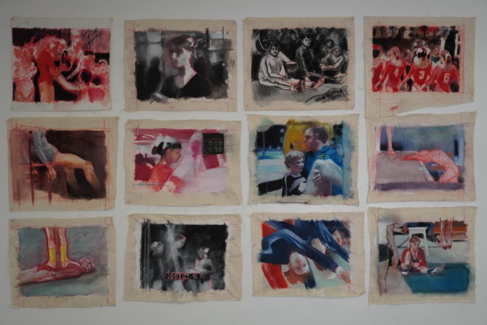 Charlotte DELAUME : Série Stakhanov, 12 huiles sur toiles, 43 x 55 cm chaque environ