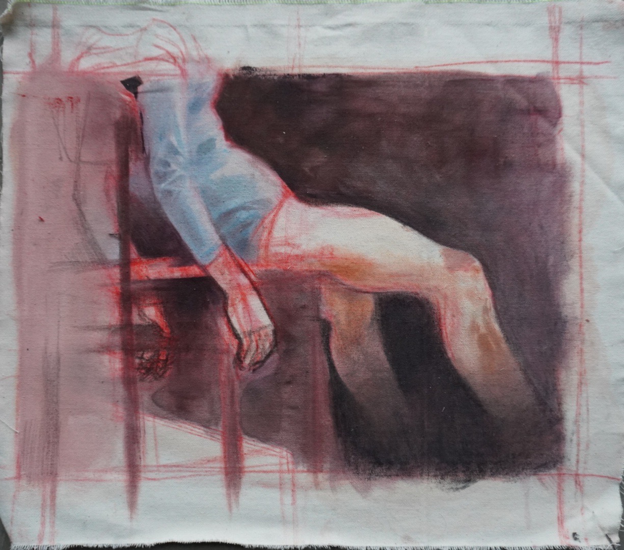 Charlotte DELAUME : Extrait de la Série Stakhanov, huile sur toile, 43 x 55 cm